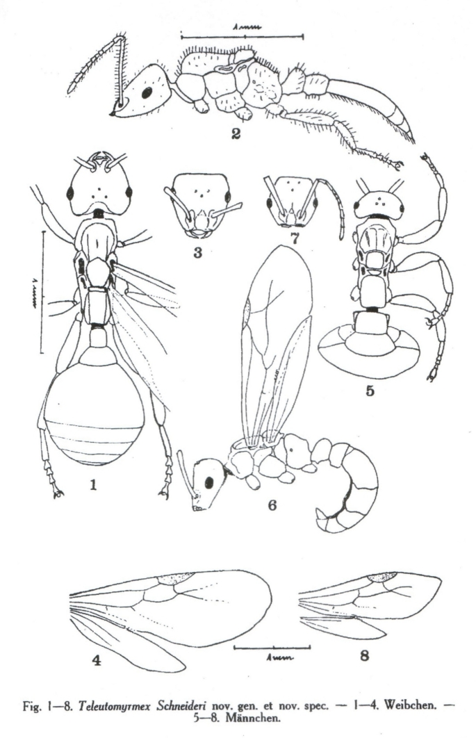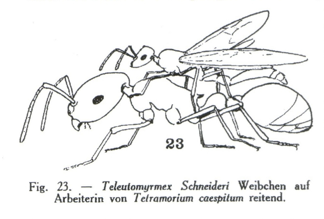 Stumper, R., 1951, “Teleutomyrmex schneideri Kutter (Hym. Formicid.). II. Mitteilung. Über die Lebensweise der neuen Schmarotzerameise.” Mitteilungen der Schweizerischen Entomologischen Gessellschaft, vol. 24, no. 2, p. 129-152.