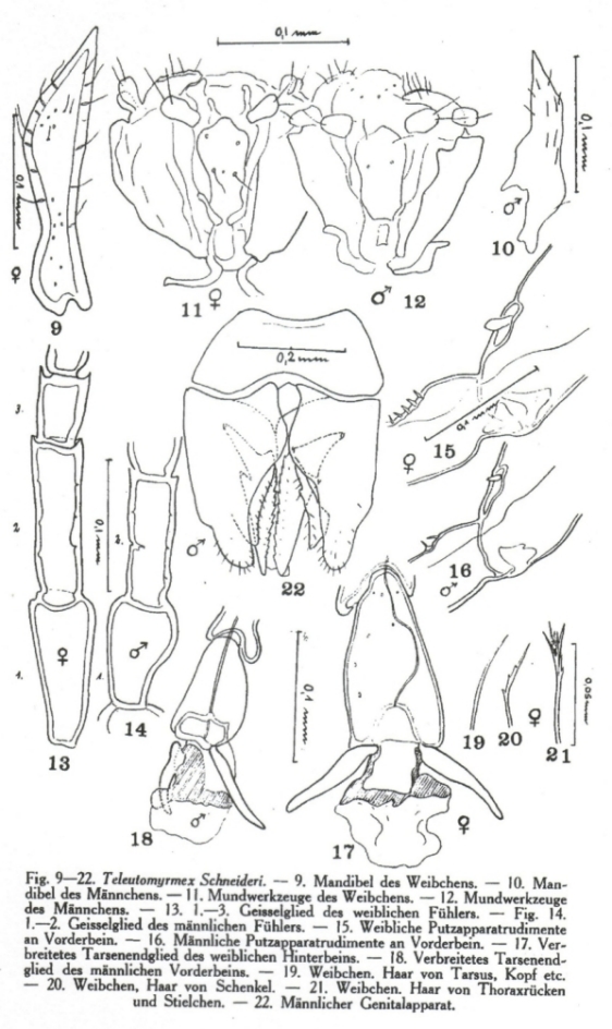 Buschinger, A., 1995, “Nicht am Ende: Die “Endameise” Teleutomyrmex schneideri.” Ameisenschutz aktuell, vol. 9, p. 1-7.
