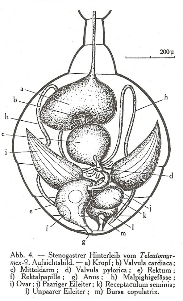 Meyer, G., 1951, “Histologische Untersuchungen an einer arbeiterlosen Ameise Anergates atratulus Schenck.” Inaugural-Dissertation, Institut für Angewandte Zoologie, Würzburg.