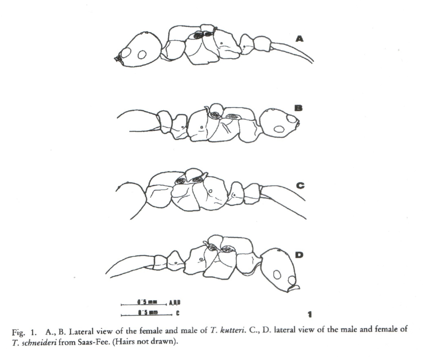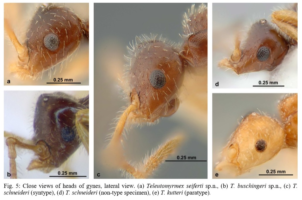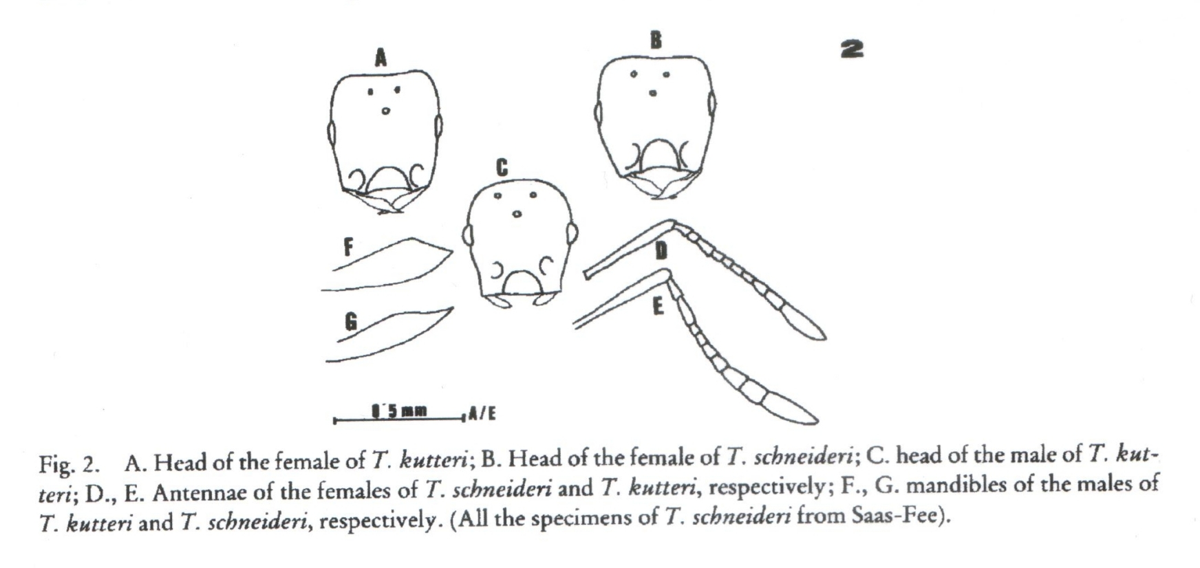 Tinaut, A., 1990, “Teleutomyrmex kutteri, spec. nov. A new species from Sierra Nevada (Granada, Spain).” Spixiana, vol. 13, no. 2, p. 201-208.