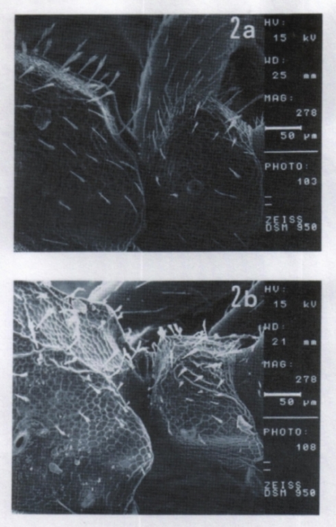 The bodies of the Teleutomyrmex queens bear the mark of extensive morphological degeneration correlated with their loss of social functions. The labial and postpharyngeal glands are reduced, and the maxillary and metapleural glands are completely absent. The mandibular glands, on the other hand, are apparently normal. In addition, the queens possess a tibial gland, the function of which is unknown. The integument is thin and less pigmented and sculptured in comparison with that of Tetramorium; as a result of these reductions the queens are shining brown, an appearance that contrasts with the opaque blackish brown of their hosts. The sting and poison apparatus are reduced; the mandibles are so degenerate that the parasites are probably unable to secure food on their own; the tibial-tarsal cleaning apparatus is underdeveloped; and, of even greater interest, the brain is reduced in size with visible degeneration in the associative centers. In the central nerve cord, ganglia 9-13 are fused into a single piece. The males are also degenerate. Their bodies, like those of the males of a few other extreme social parasites, are “pupoid,” meaning that the cuticle is thin and depigmented, actually greyish in color; the petiole and postpetiole are thick and provided with broad articulating surfaces; and the abdomen is soft and deflected downward at the tip.