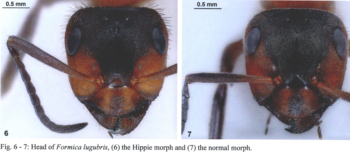 Für weitere Einzelheiten muss man die umfangreiche Arbeit lesen. Nur so viel noch, wegen des Titels: Seifert selbst hat in einer Arbeit von 2003 die ungewöhnlich stark beborsteten Individuen aus Schweden und Finnland als deren „Hippie“ morph bezeichnet. Zuvor hatte man noch vermutet, dass es sich dabei um eine unbeschriebene Art handle. Doch die untersuchten Populationen enthalten zum Teil Mischungen von normalen F. lugubris und „Hippies“. Auch die Hippies gehören also der Art F. lugubris an.