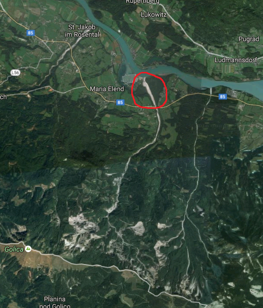 Sehr gute Idee, eine Überblickskarte zu bringen, hab ich zu wenig bedacht, dass dieses Gebiet in der Ferne kaum bekannt sein wird. Am Südrand der Abb. kann man am Gebirgskamm (Karawanken) die Grenze zu Slowenien erkennen, dieses Gebirge gehört bereits zu den Südalpen (Dinariden). Der Große Dürrenbach (Suchabach) mündet in die Drau, dem Hauptfluss von Kärnten. Die Drau fließt nach Osten, nimmt in Slowenien die Mur aus der Steiermark auf und fließt dann in die Donau.