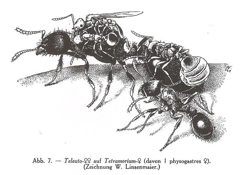 Stumper, R., 1951, “Teleutomyrmex schneideri Kutter (Hym. Formicid.). II. Mitteilung. Über die Lebensweise der neuen Schmarotzerameise.” Mitteilungen der Schweizerischen Entomologischen Gessellschaft, vol. 24, no. 2, p. 129-152.