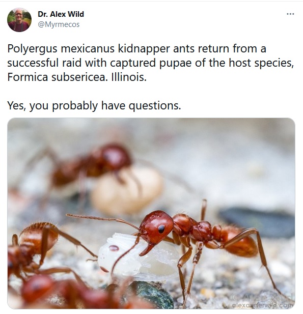 Alex Wild postet ein Bild vom Sklavenraubzug der Amazonenameise Polyergus mexicanus.