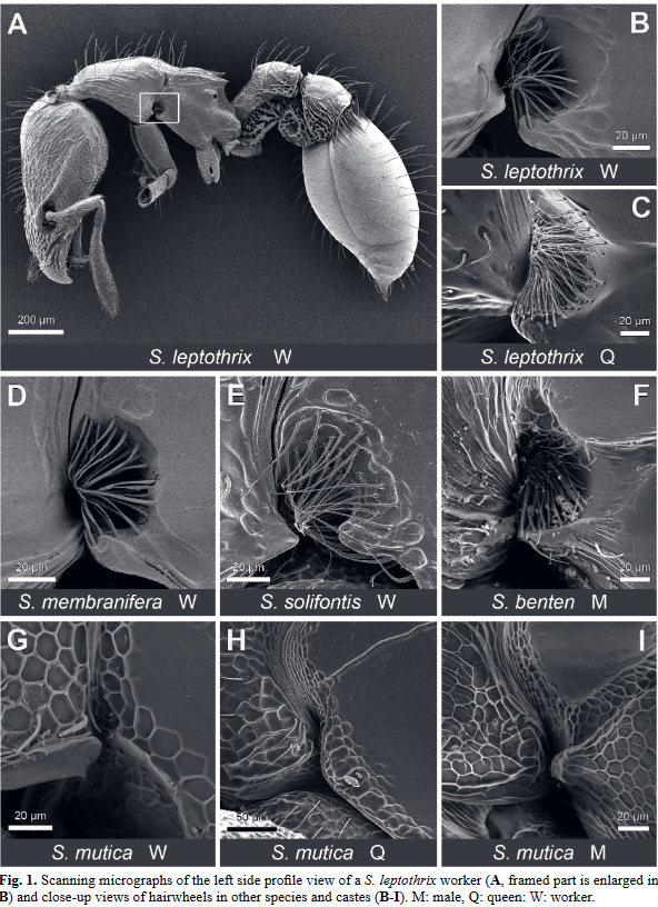 The 'hairwheels' in Strumigenys ants are not glandular. CHU WANG, CHUNG-CHI LIN, ROBERTO A. KELLER and JOHAN BILLEN, 2021. Asian Myrmecology 13: e013004.