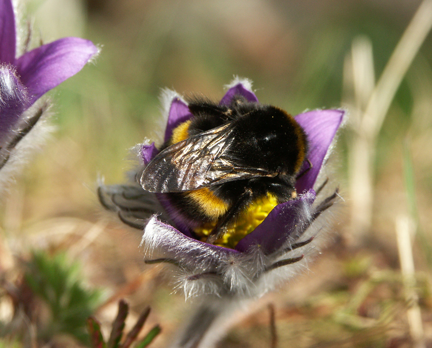 Hummelkönigin in Pulsatilla-Blüte