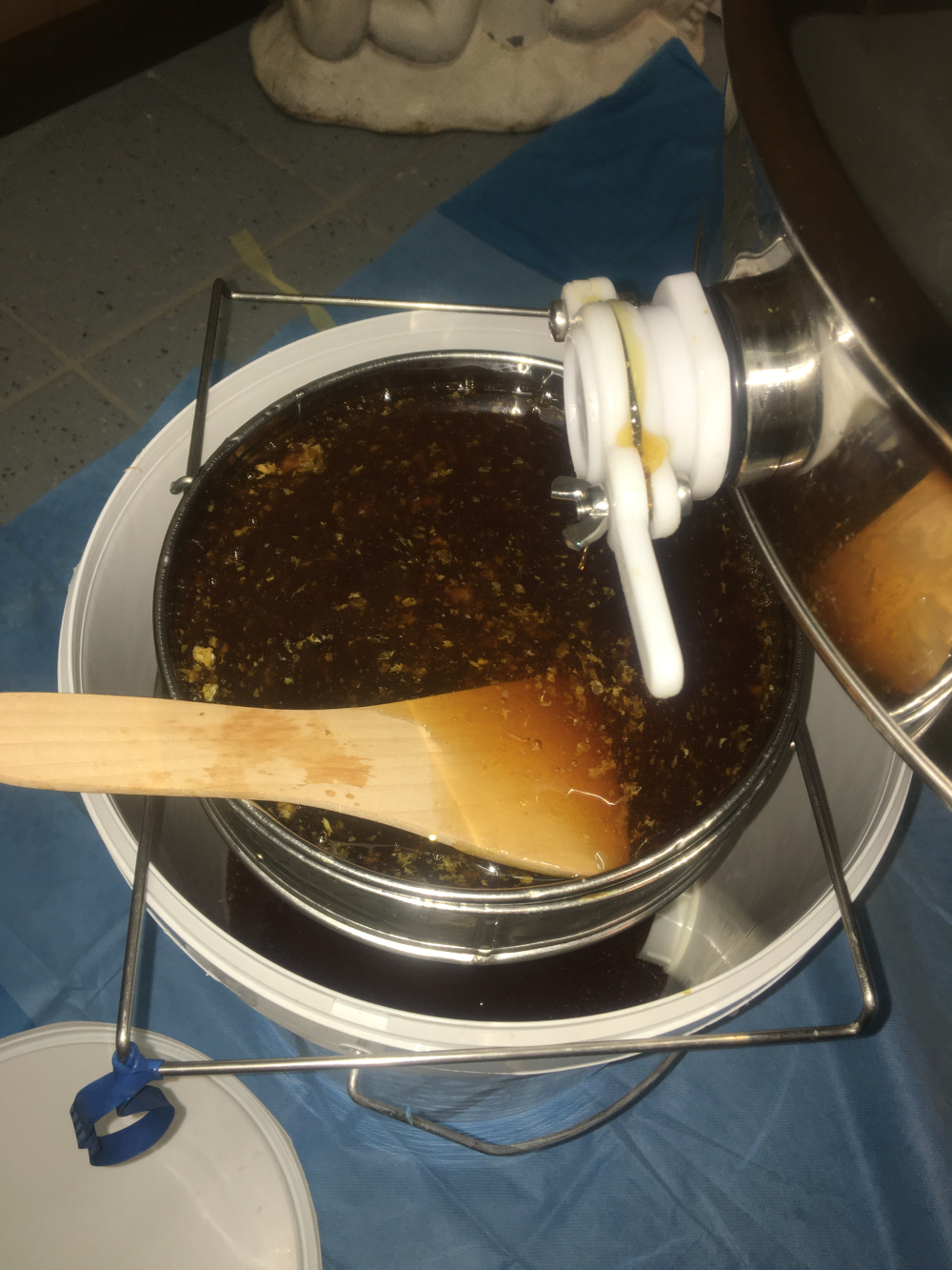 Frischer Honig im Sieb...