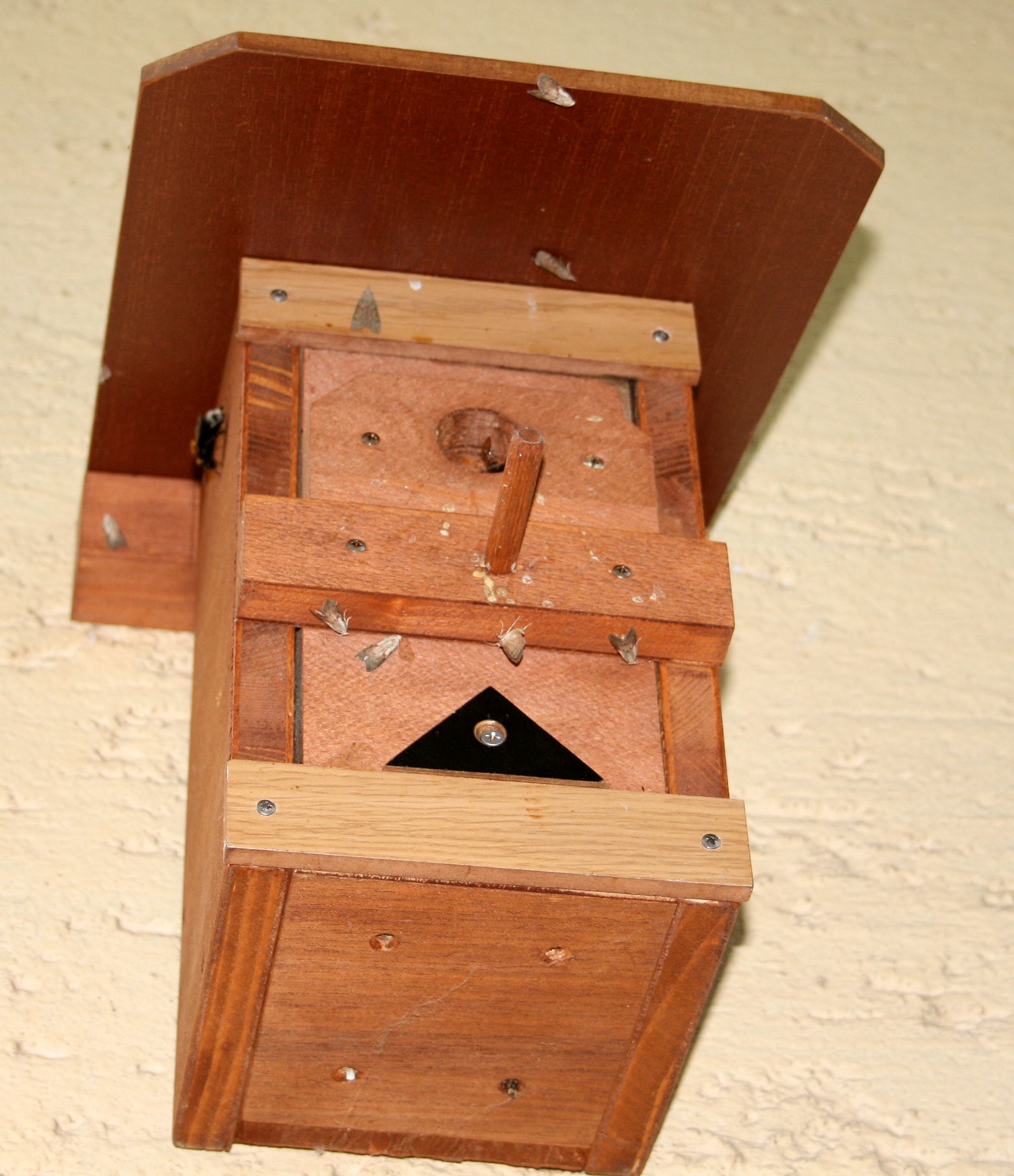 2011 hatte ich ebenfalls eine Hummelkolonie in einem Hummelkasten im Garten und sie auch an die Freunde der Motten verloren. 2012 bin ich dann auf Jürgen Börners geniale Bauanleitung im Netz gestoßen: Die "Hummelklappe"