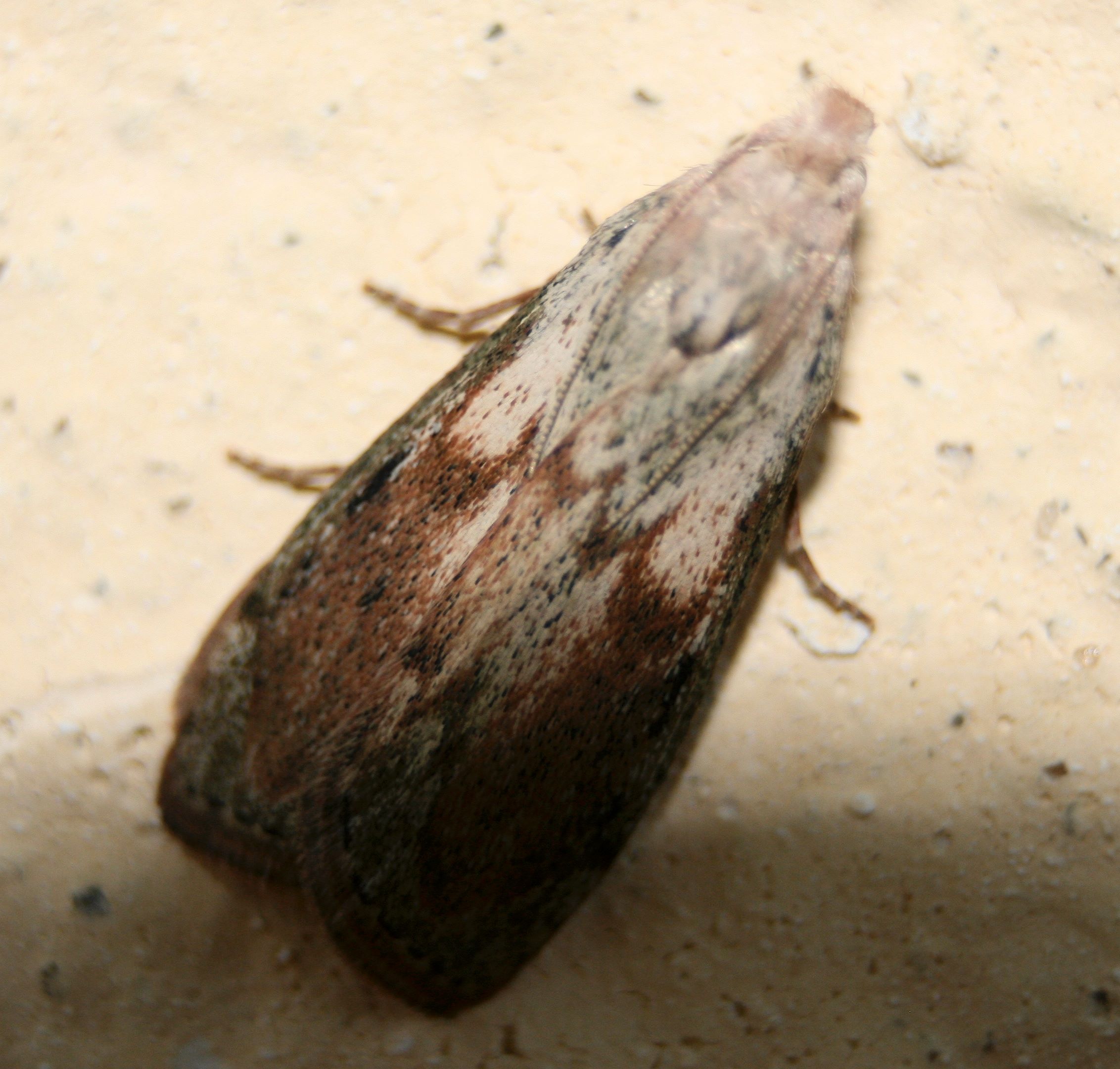 scheint mir ein Falter der Gattung Aphomia zu sein, Vermutlich Aphomia sociella. Bei mir sind in den letzten Jahren schon 2 Hornisse Nester deren Rauben zum Opfer gefallen. Das Nest stirbt schneller ab als man denkt. Vor allem kleine Kolonien haben keinerlei Chance.