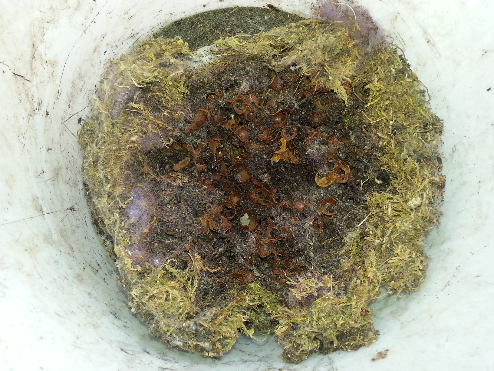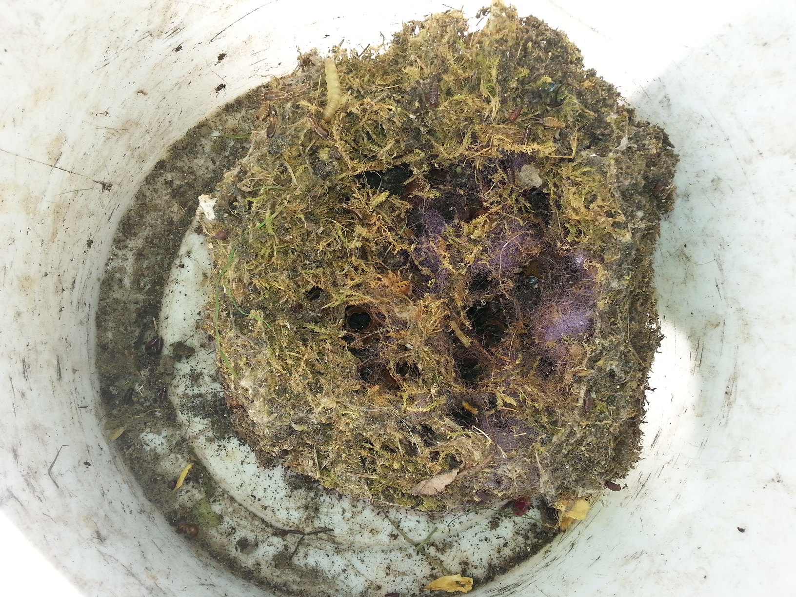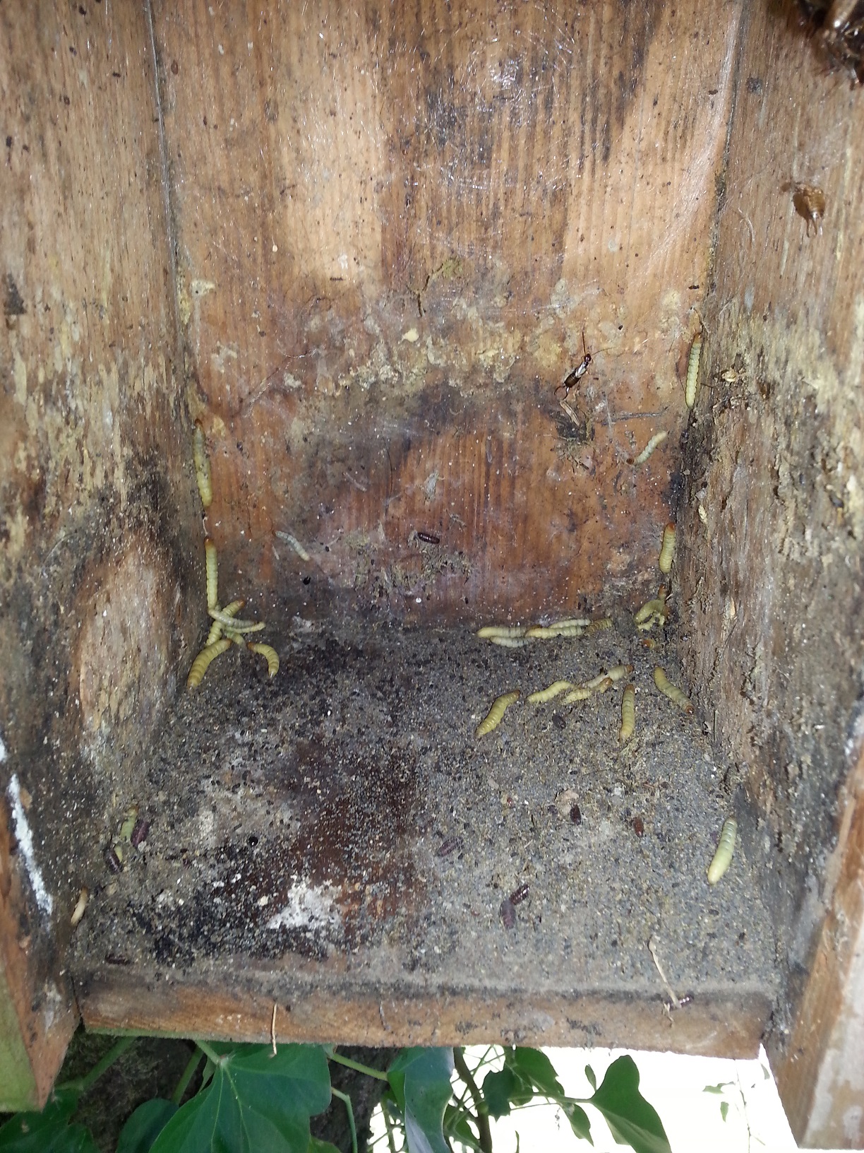 Das ganze Nistmaterial war von Larven durchsetzt.