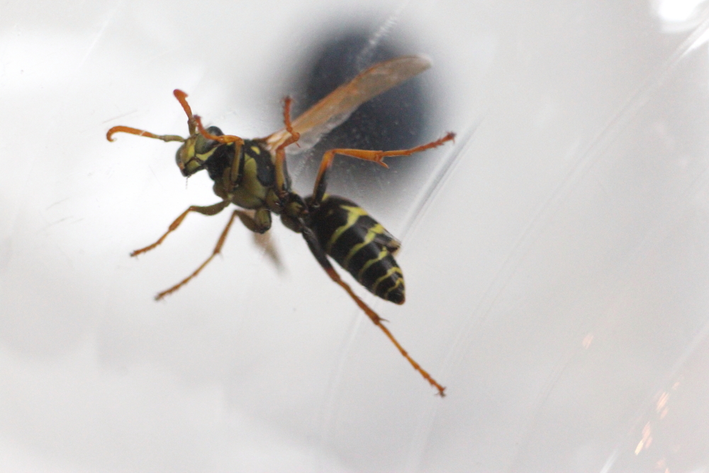 Polistes dominula unter dem Rand einer Mülltonne berichtet. Wenige Tage später entdeckte ich ein weiteres