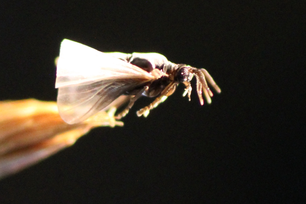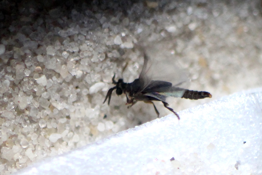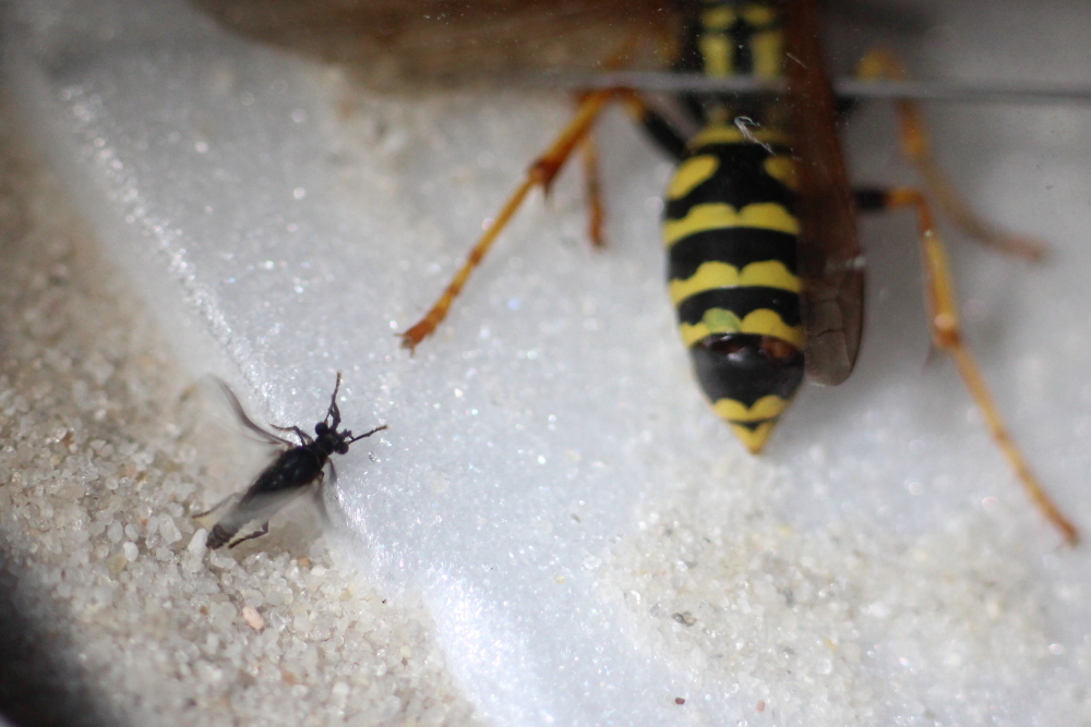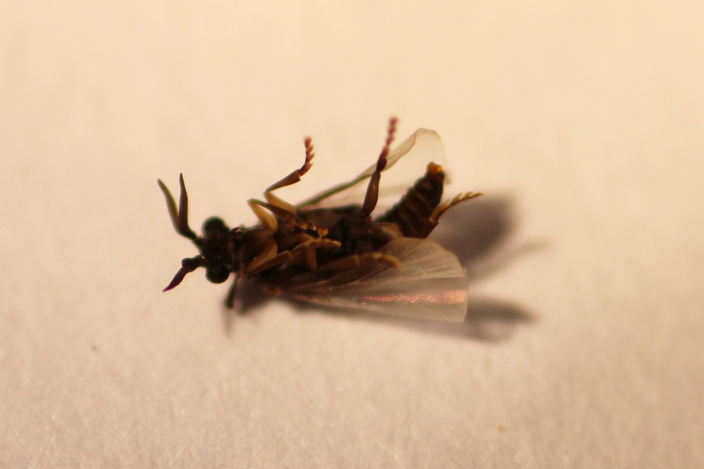 links zwei Männchen (gekrümmte Fühlerspitzen). Es waren insgesamt vier Männchen, aber keine Arbeiterinnen.