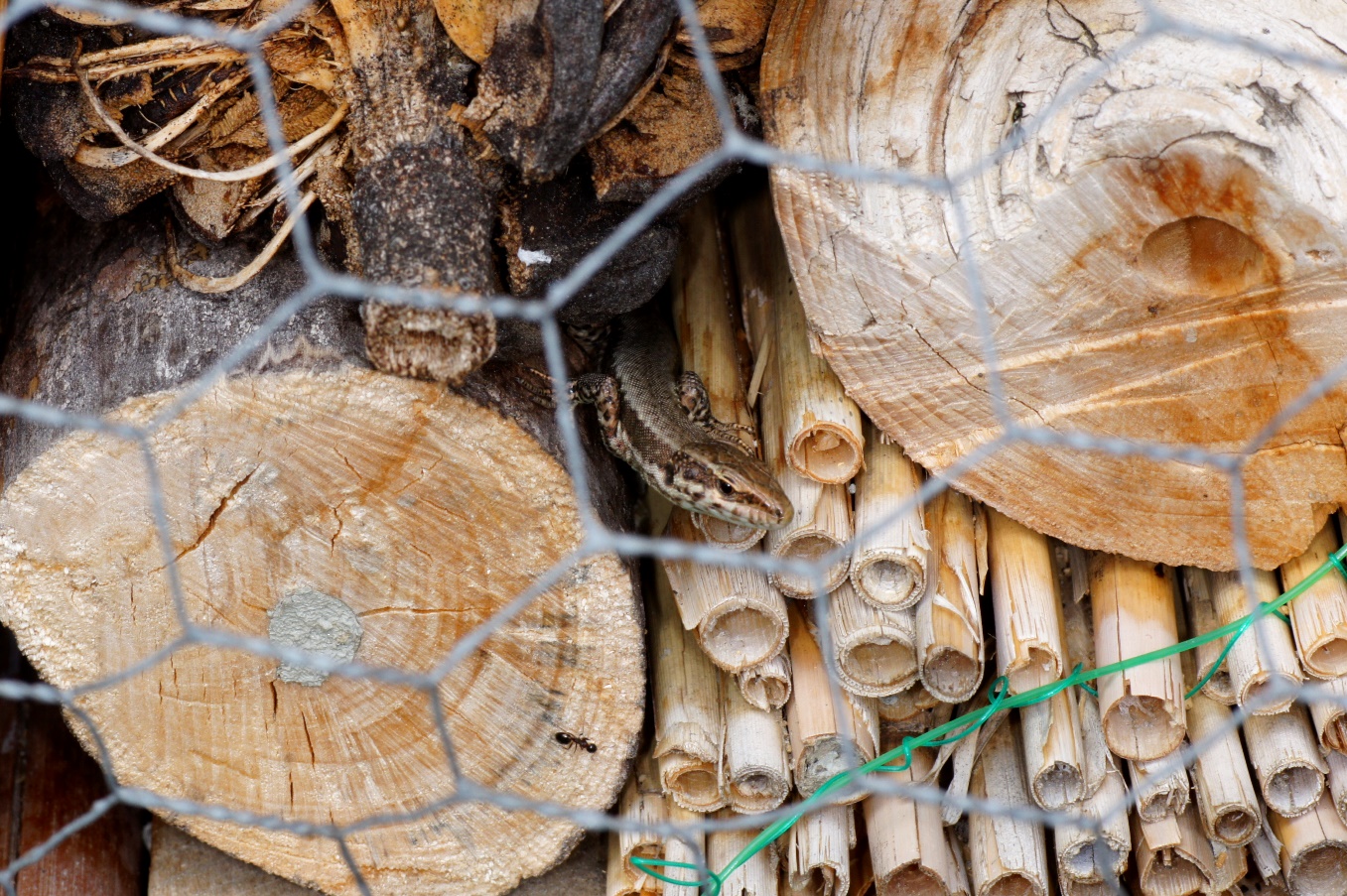 Die Eidechse, die ich schon vor einiger Zeit vorgestellt habe, wohnt immer noch hier und hat zuletzt von hinten ein Röhrchen vorgeschoben und zum Absturz gebracht