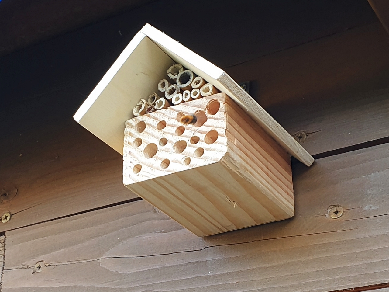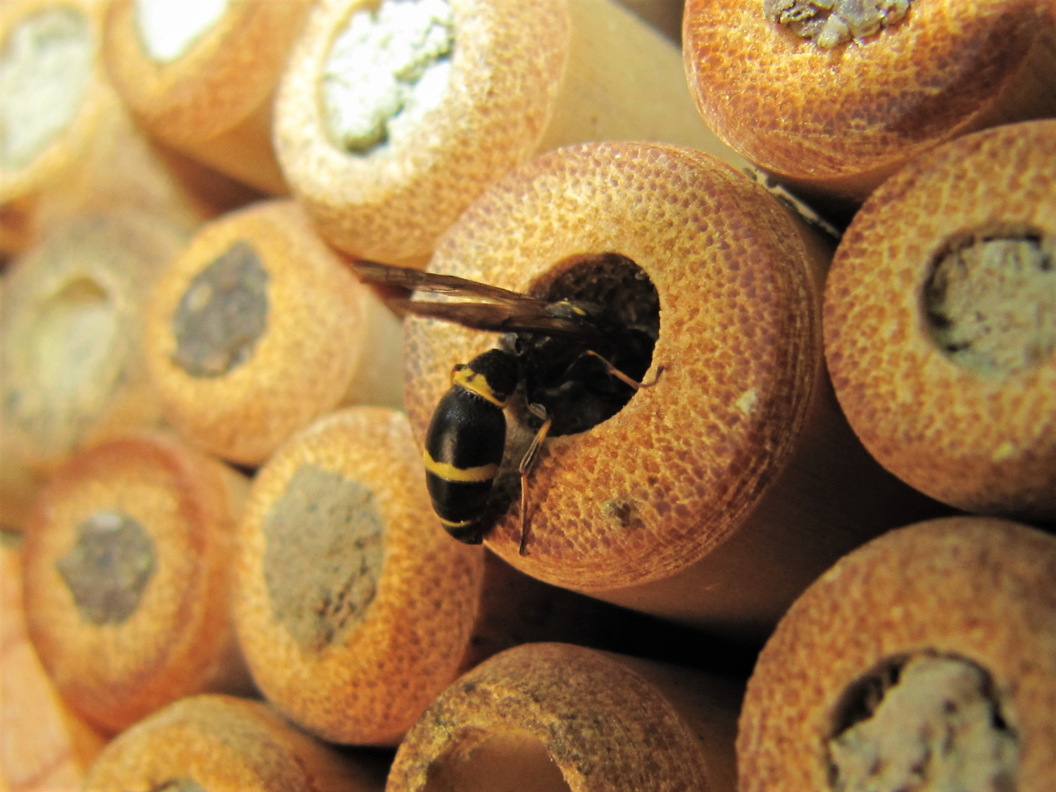 Als ich das vor ca. 35 Jahren entdeckt hatte, habe ich zuerst Bündel von Bambusröhren angeboten, später dann gebohrte Holzscheiben, in meiner "Bienen-Favela". ;)