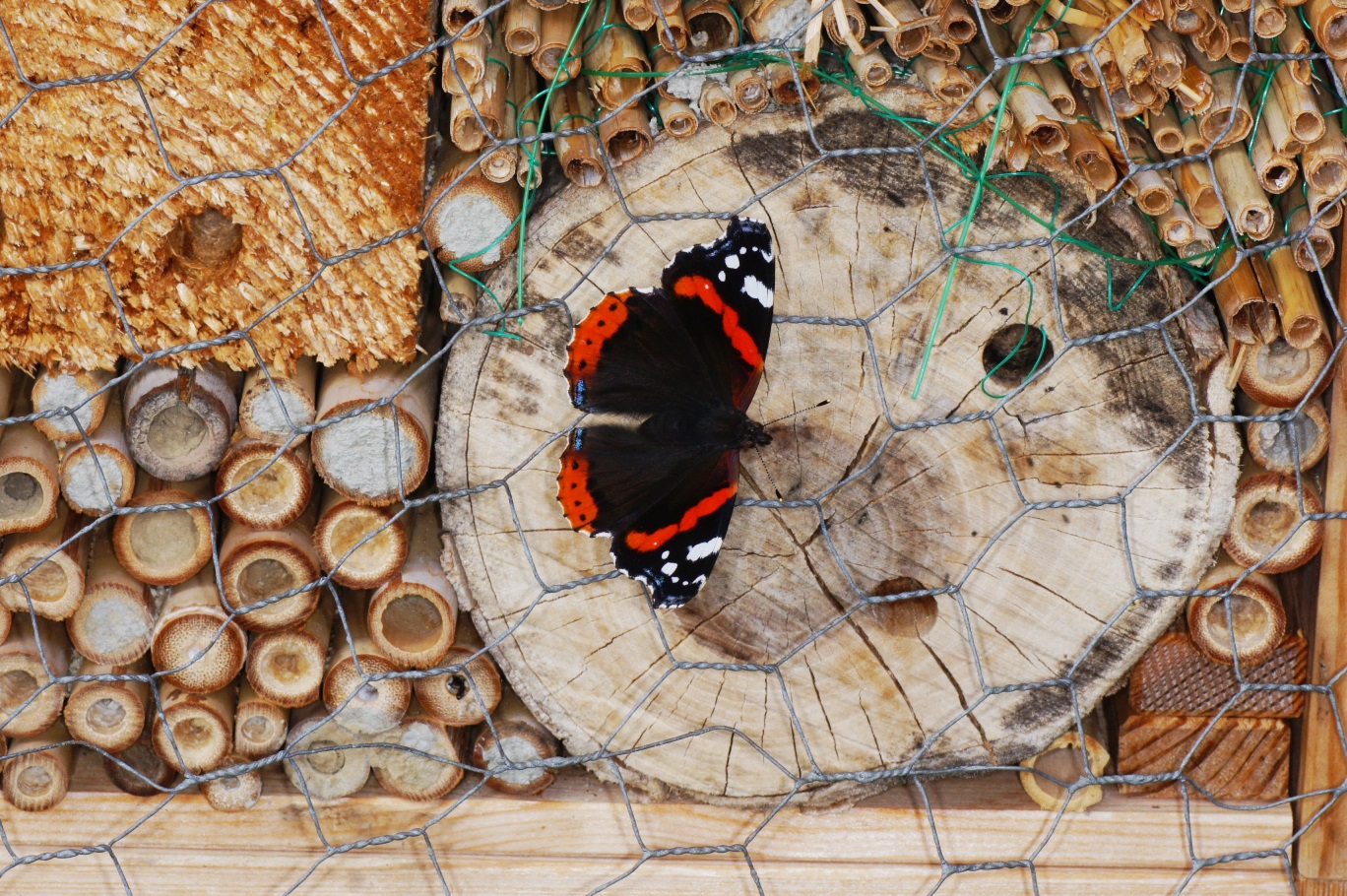Wer sagt, dass nur Wildbienen, solitäre Wespen etc. Gefallen an einem Insektenhotel finden? Am 23. 6 habe ich schon über Ameisen und eine Eidechse als Bewohner berichtet. Heute am Nachmittag flattert plötzlich ein Edelfalter herbei. Ob es dem Admiral auch hier gefallen würde? Soweit ich informiert bin, fliegt dieser bald in den Süden. Ich kann gut nachvollziehen, warum die meisten Menschen (und Entomologen) besondere Freude an Schmetterlingen haben...... leider füllen viele Leute ihre Schaukästen mit diesen "Edelsteinen". Bei uns (+ Sohn Roman) gibt es nur Fotos und manchmal sorgsam gefangene Indiviuen, die nach der Bestimmung gleich wieder frei gelassen werden.