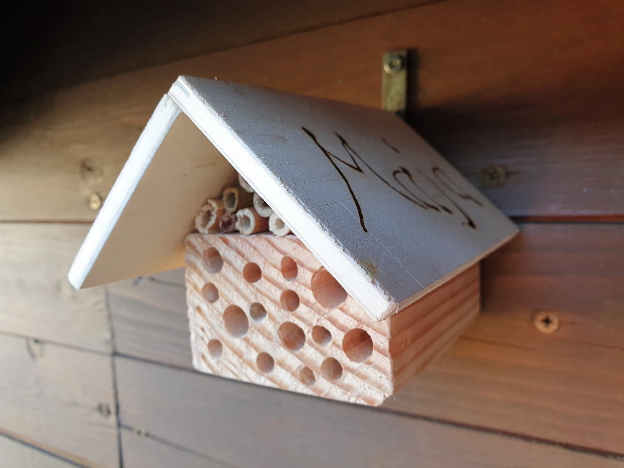 Der eine oder andere wird es mitbekommen haben, dass wir uns verlobt haben und dieses Jahr heiraten wollen. Unseren Gästen möchten wir gerne schöne und wenn es geht auch praktische Gastgeschenke mit auf den Weg geben. Mir kamen da kleine Insektenhotels in den Sinn auf deren Dächern man die Namen der Gäste einbrennen könnte und ich habe heute mal einen Prototyp gebaut.