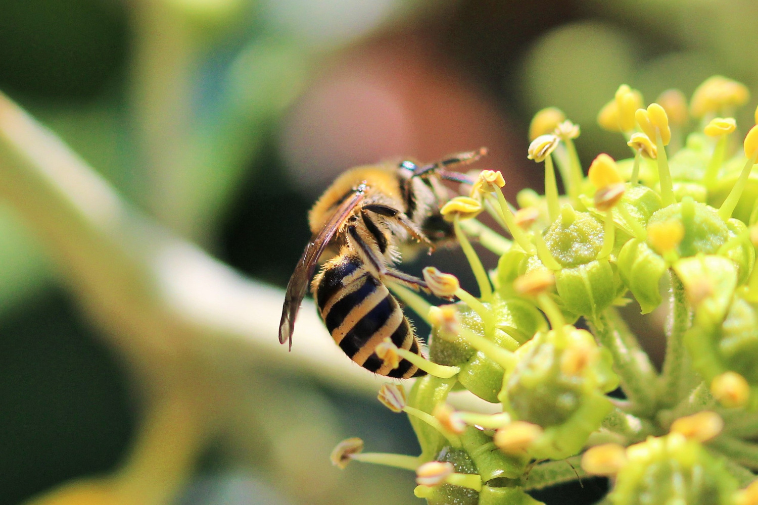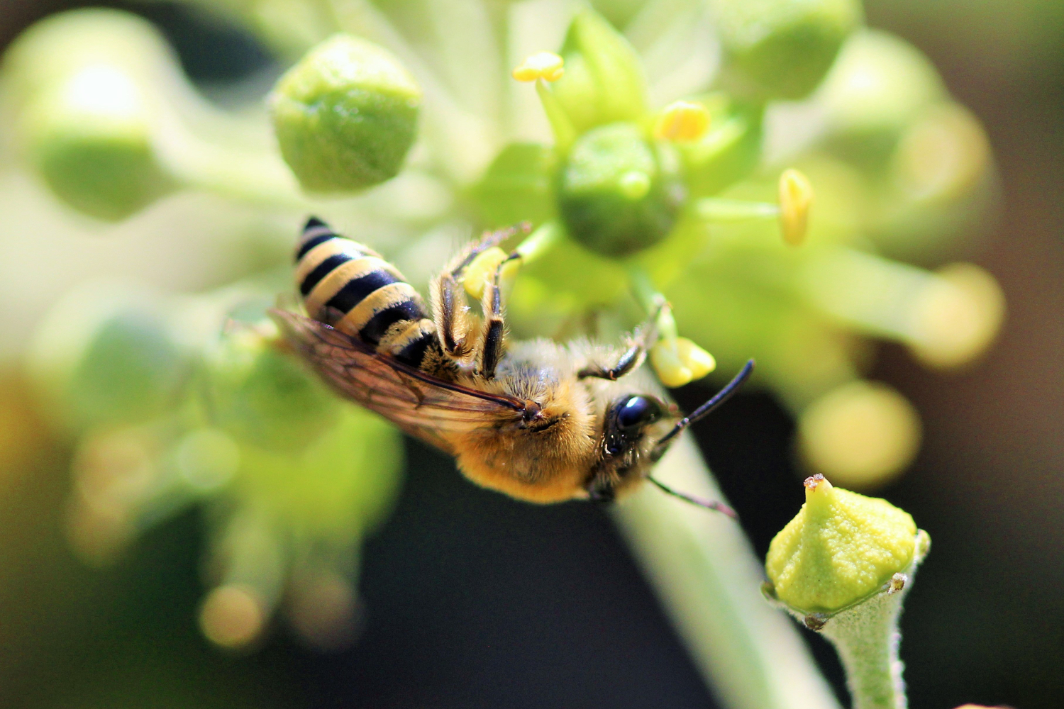 In diesen Tagen lohnt sich für Insektenfreunde der Besuch von blühendem Efeu! Diverse Schwebefliegen, Wespen und Bienen (dazu später mehr) besuchen die unscheinbare Pflanze liebend gerne.