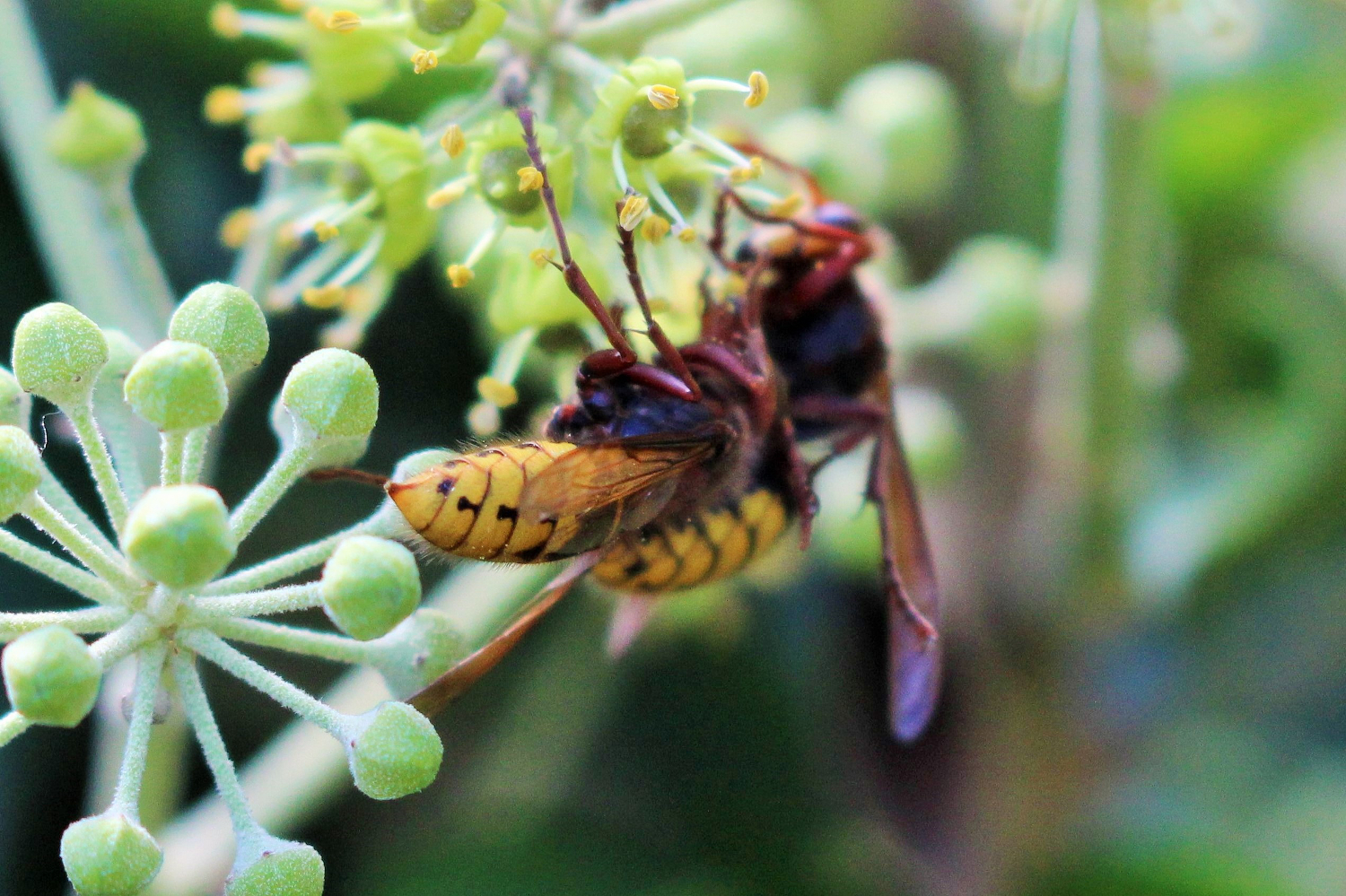 Genau! Für die Hornissen ist der Efeu im Moment ein wahres Schlaraffenland: