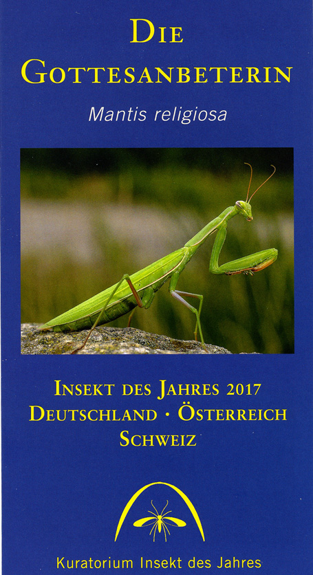 Mantis religiosa wurde zum Insekt des Jahres 2017 gekürt. Hier ist die Titelseite des Faltblattes dazu.