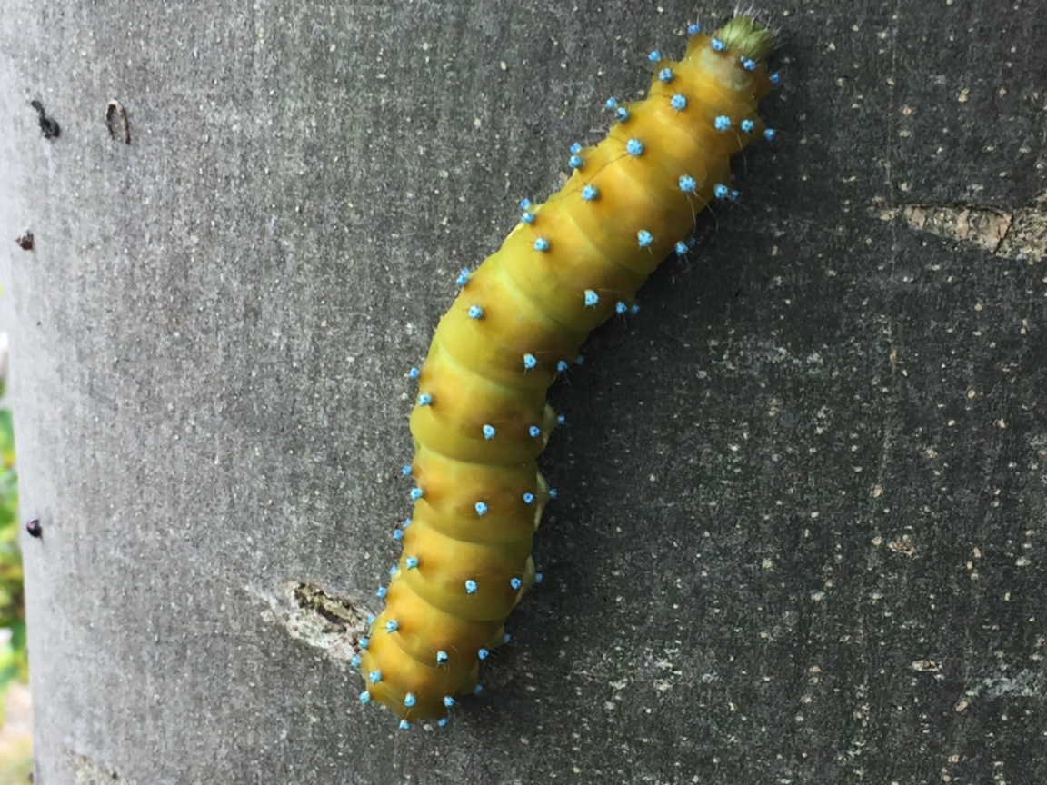 Gestern bekam ich das Foto einer Schmetterlingsraupe, die in Wien fotografiert wurde. Sie hätte die "Länge einer Zigarettenschachtel" wurde mitgeteilt, weitere Angaben fehlten! Ein Experte hat mir rasch geholfen, es handelt sich um Saturnia pyri, das Wiener Nachtpfauenauge. Es ist der größte Schmetterling, der in Mitteleuropa vorkommt und stammt ursprünglich aus dem Mittelmeerraum/Nordafrika: https://de.wikipedia.org/wiki/Wiener_Nachtpfauenauge