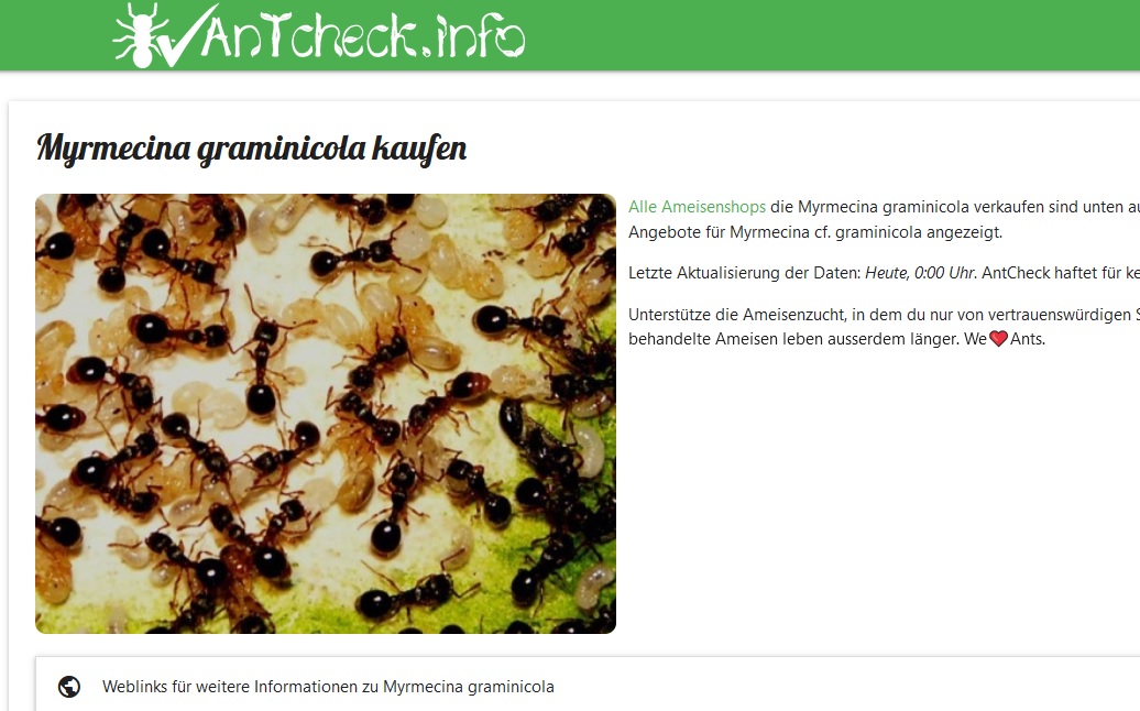 Auf der Antcheck-Seite ist unter „Weblinks für weitere Informationen zu Myrmecina graminicola“ das AWiki nicht zu finden.