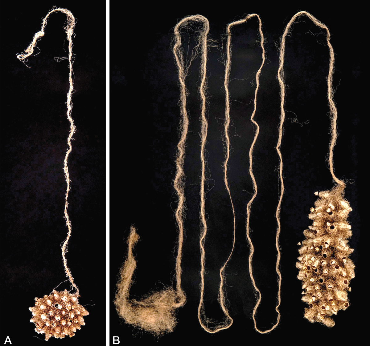 In dem hier vorgestellten Beitrag wird eine Art der Gattung Meteorus neu beschrieben, deren Larven vor der Verpuppung ihre Aufhänge-Fäden zu einer Art Tau verzwirnen, so dass Gebilde wie die im Foto entstehen.