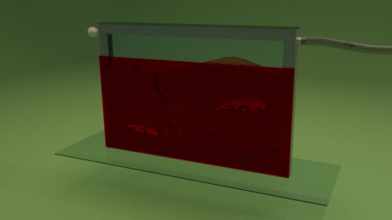 Der Sand sieht noch bescheiden aus.(Deswegen ging es aber schnell, bei allen Glasflächen macht ja Blender schon alles...)