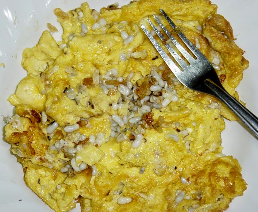 Das letzte, scheinbar ein Omelett mit Maden (Ameisenlarven), kommt mir doch etwas gewöhnungsbedürftig vor!