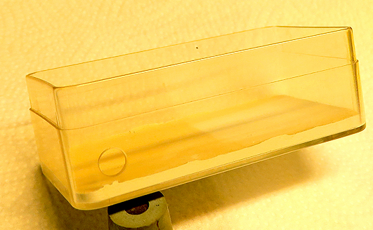 In unseren Zuchtbehältern für Monomorium pharaonis standen mehrere kleine Plastikschachteln, deren Böden mit „Modellgips“ ca. 3 mm hoch ausgegossen waren. Damit konnte die Feuchtigkeit in den Kammern reguliert werden; sie war relativ hoch. Wie im 1. Bild angedeutet, lag auf dem Gips noch ein Stück Karton mit nach unten gefalteten Rändern, als Lichtschutz für die Ameisen, die darunter ihre Brut gelagert und versorgt haben.