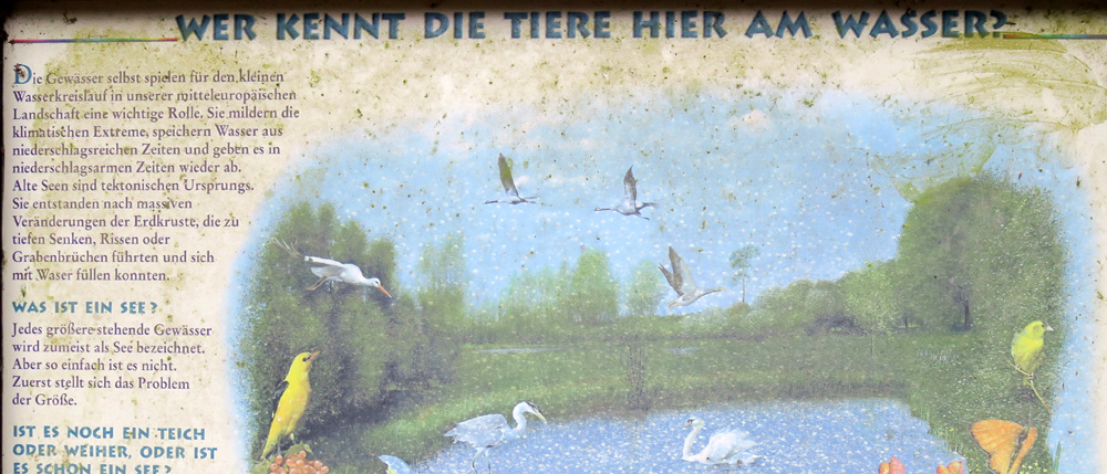 Die Informationstafeln zum Leben im Wald und Wasser zeigen deutliche Spuren vom „Zahn der Zeit“, und manche der dargestellten Organismen
