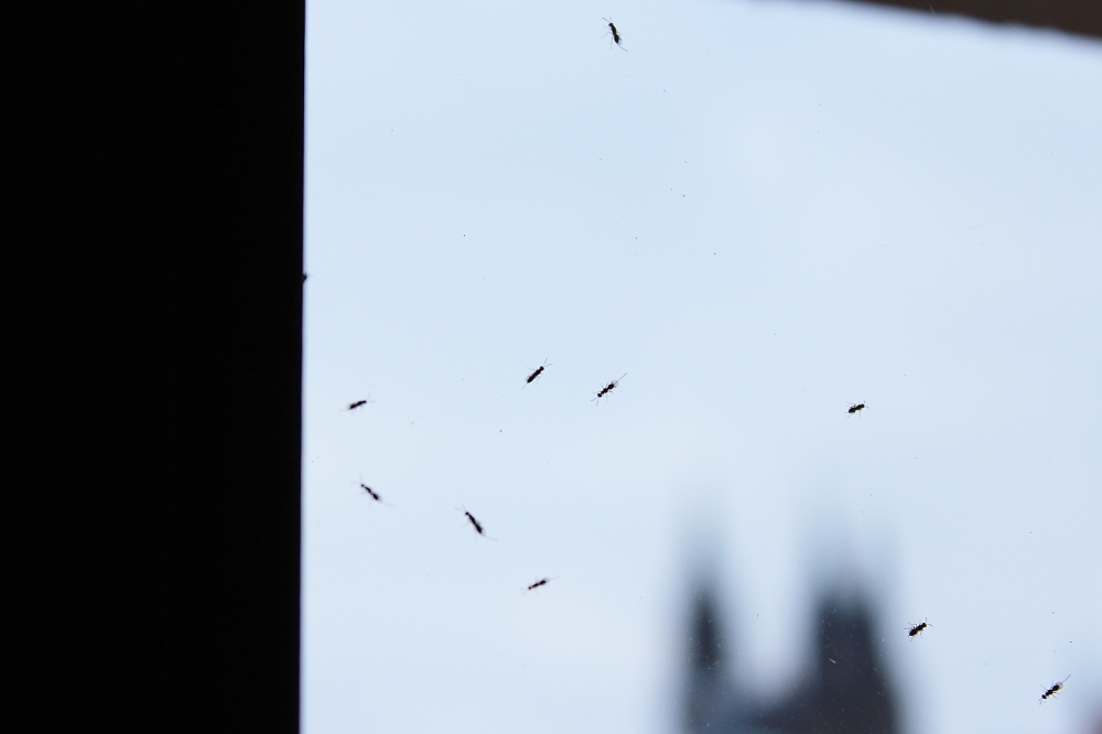 Innen am Küchenfenster und in anderen Räumen sind keine solchen 2-3 mm langen Winzlinge zu sehen.