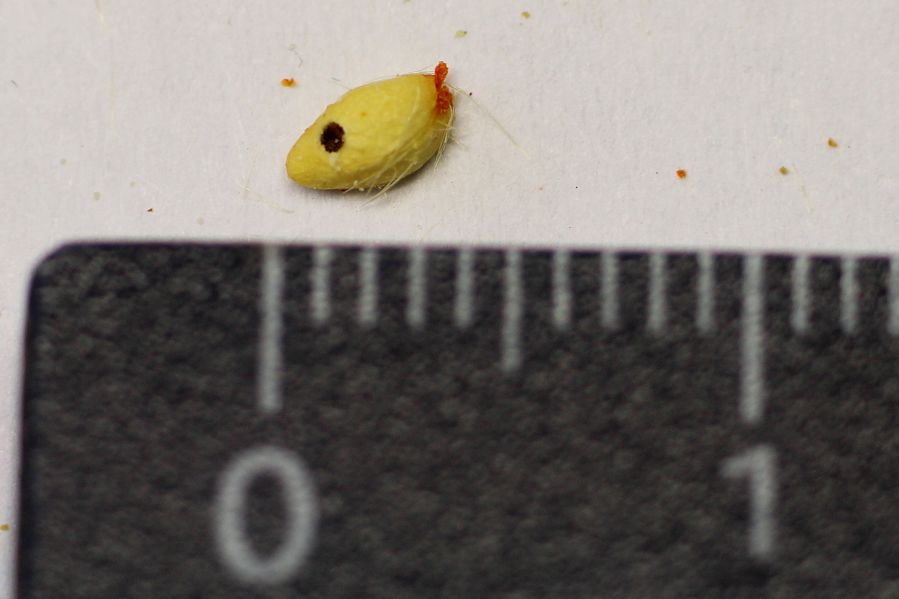 Als Hilfestellung habe ich mal ein winziges Samenkorn aus einer der Hagebutten freigelegt: