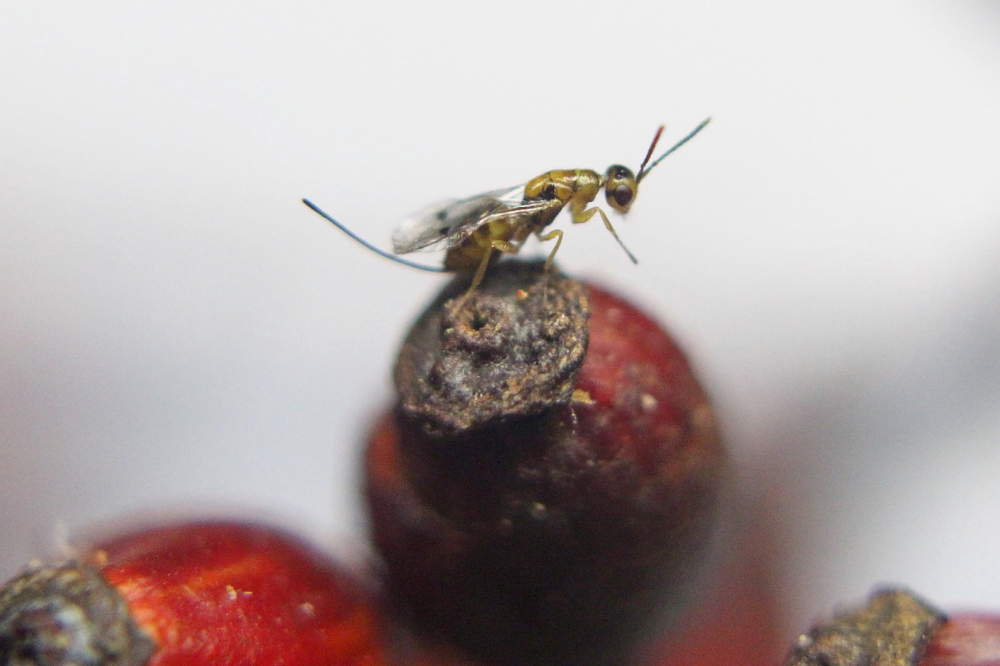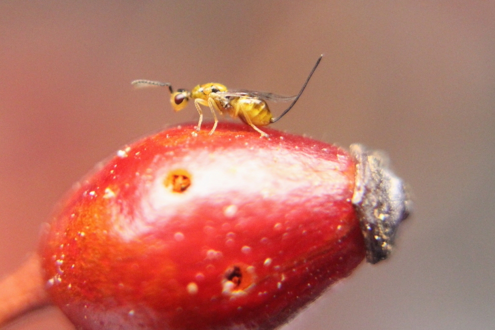 Die Stellung der Samenwespe Megastigmus aculeatus Swed. im System wird betrachtet, eine Literaturübersicht über diese Art wird gegeben. Untersuchungen in 3 österr. Biotopen von 1970 bis 1972 zeigten, daß der Befall von Hagebutten 28,3 % (Niederösterreich), 75,4% (Steiermark) und 91,2 % (Wiener Wald) betrug. Der Lebenszyklus des Insekts wird be‐schrieben. Im Juni/Juli schlüpfen die Adulten aus den letztjährigen Früchten. Die Art scheint teilweise parthenogenetisch zu sein. Das Geschlechterverhältnis war sehr stark zugunsten der Weibchen verschoben (97.7 : 2.3). Die Eier werden in die jungen grünen Hagebutten mit Hilfe des Legebohrers abgelegt. Die Larve überwintert in der Hagebutte.