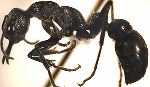 Später entdeckte ich in einer Bildergalerie das Original einer Myrmecia-Art, das „O. Greinko“ durch ein paar rote Bereiche gefälscht, die Insektennadel "ausradiert" und die Mandibeln verlängert hatte. Die Beinstellung verrät die Fälschung: