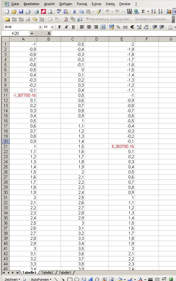 Ich vermute mal du rechnest in jeder Spalte jeweils immer +0.1 und weil die Zahl als float oder double Wert nicht exakt dargestellt werden kann, addiert sich der Fehler einfach auf.