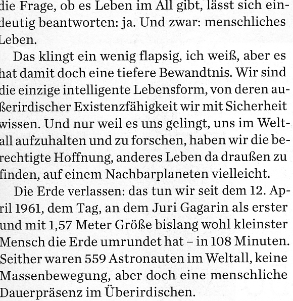 Gefilden bemüht. Und wünschen wir Herrn Gerst, dass er auf dem Weg ins Außerirdische nicht unbeabsichtigt im Überirdischen landet. ;)