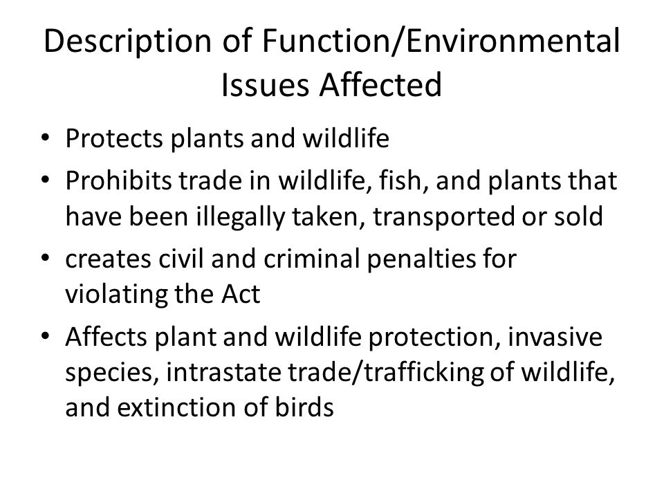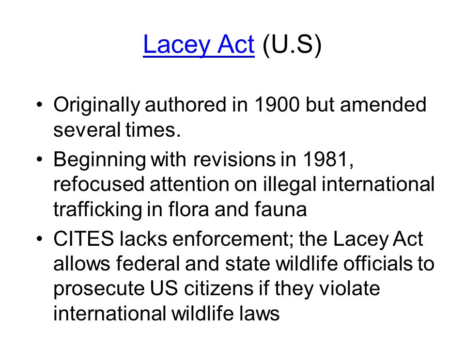 Der US Lacey Act stammt aus dem Jahr 1900, und wurde 2008 ergänzt und um geschützte Pflanzen etc. erweitert. Hier sind weitere Informationen zu finden.