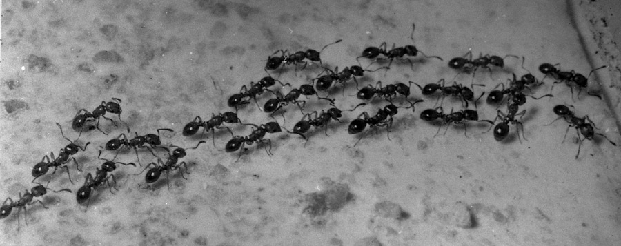 Sklavenraubzug einer Temnothorax-Verwandten. Länge der "Armee" gesamt ca 4cm.