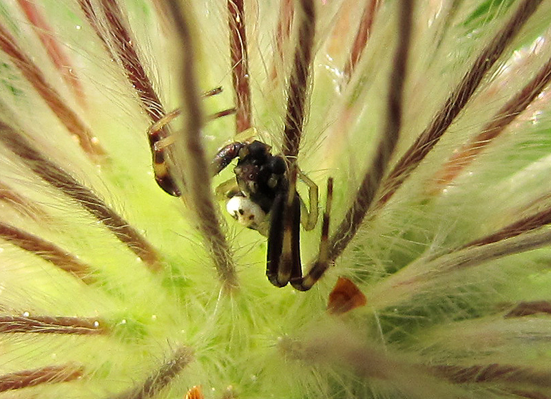 Er lauert im Fruchtstand der Küchenschelle (Pulsatilla vulgaris), die ich kürzlich hier vorgestellt hatte.