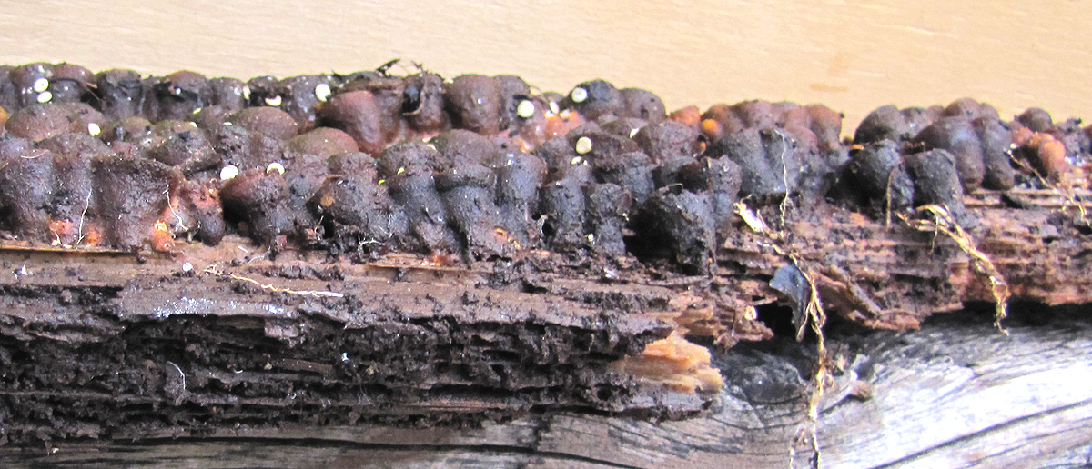 Es kam heute beim Ausheben des Komposts zum Vorschein, an einer der ziemlich verrotteten Latten des Silos.