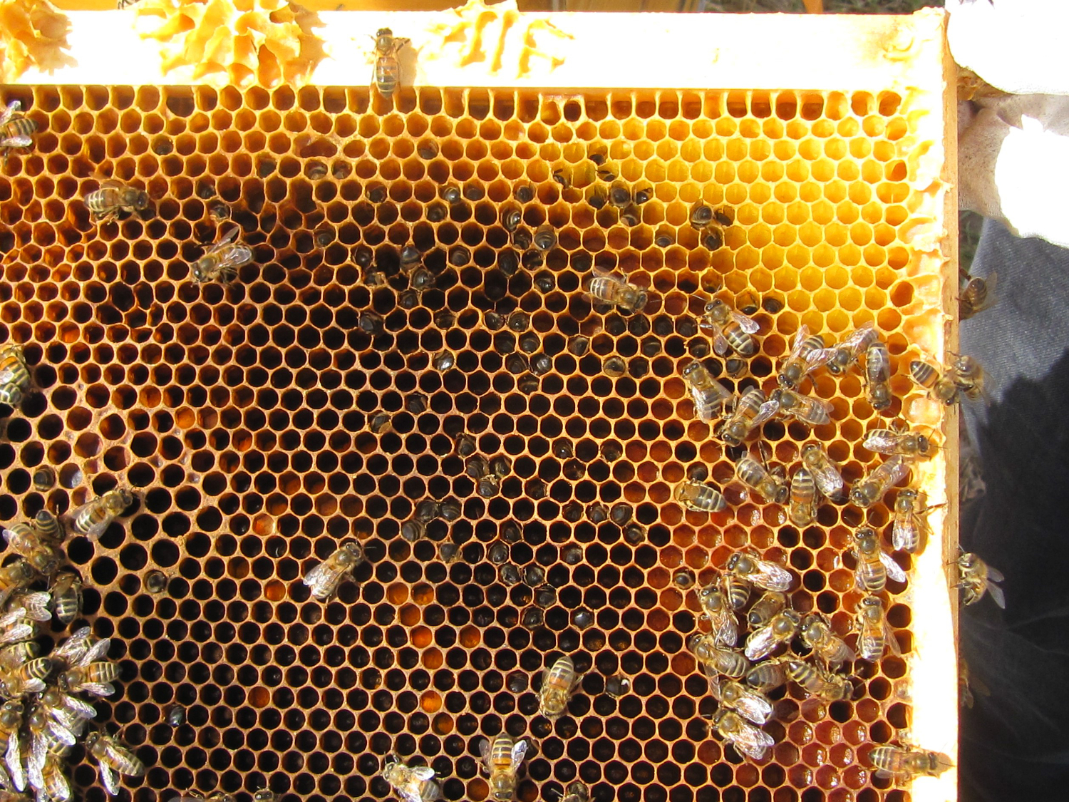Verhungerte Bienen und kaum Futter in den Waben.JPG