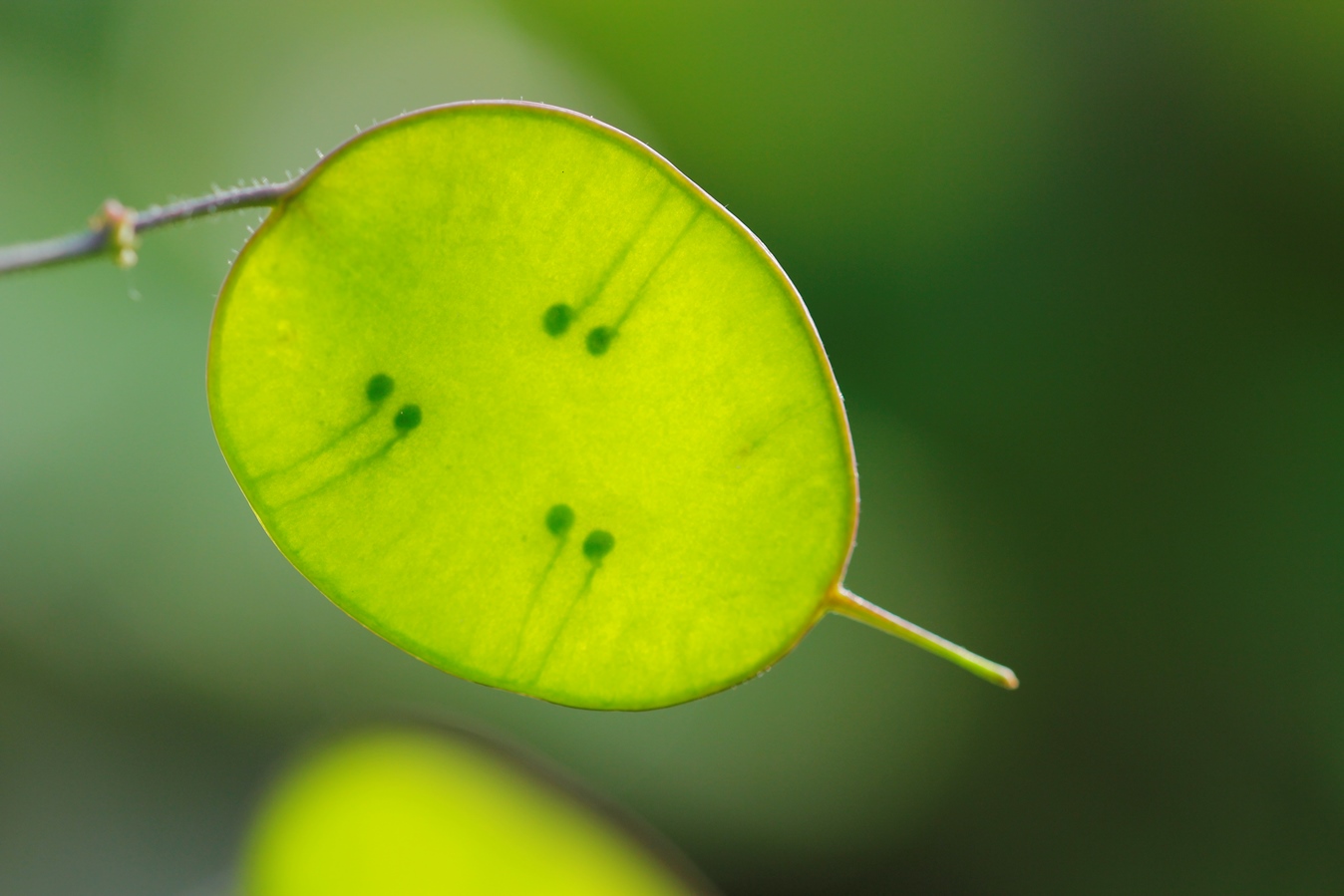 ich würde auf eine noch nicht ausgefärbte Silver Dollar Pflanze (Lunaria annua) tippen.