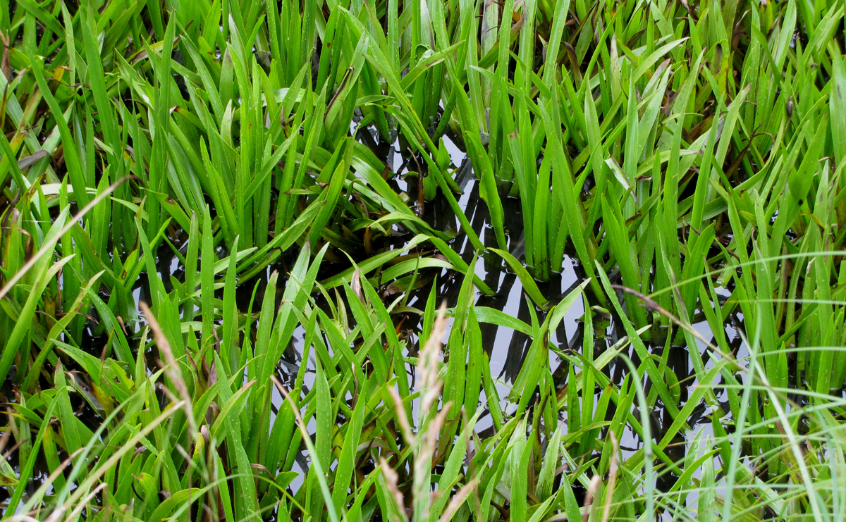 Im Ausschnitt ist erkennbar, wie die Blätter aus dem Wasser ragen.