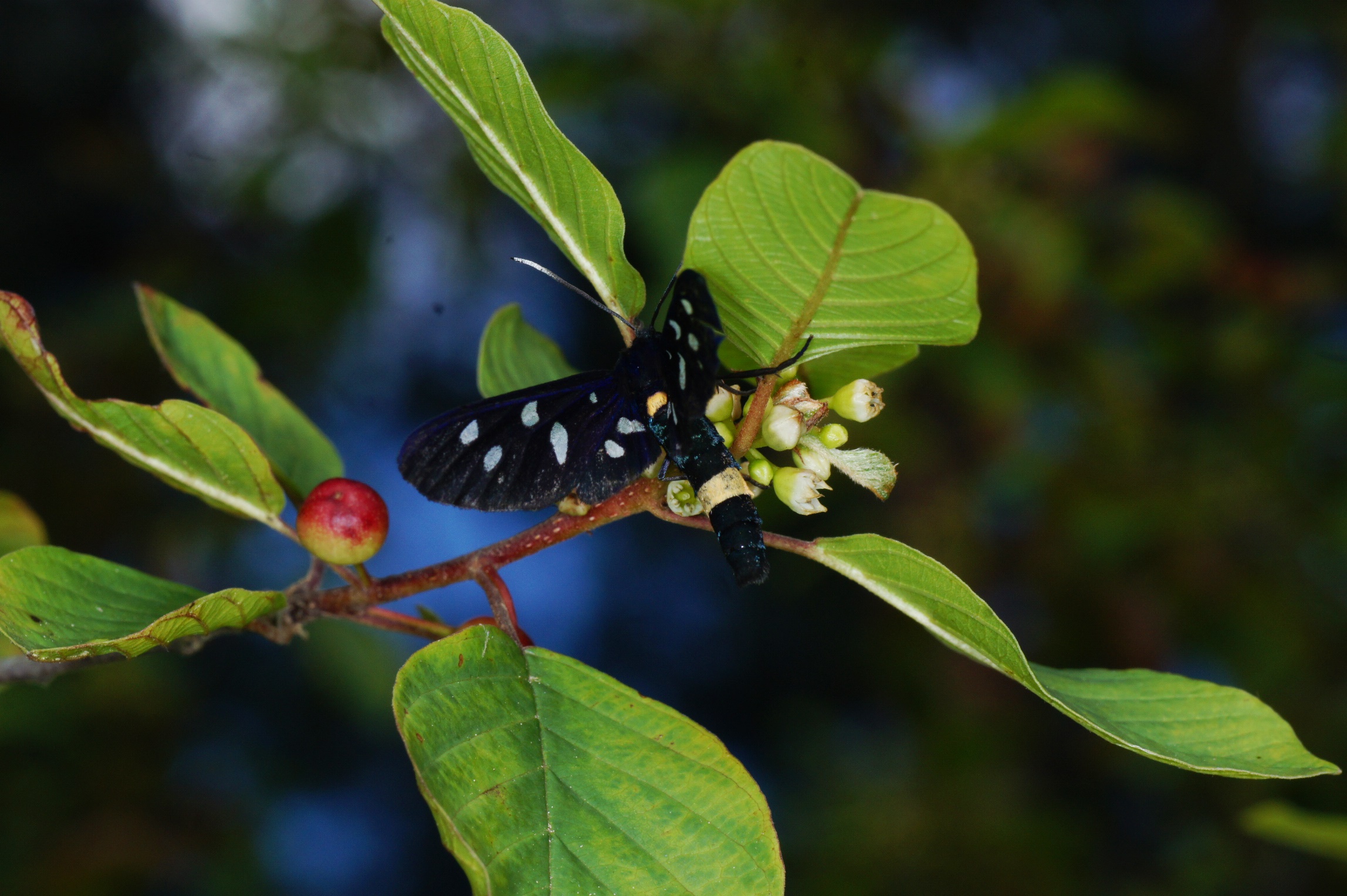 Ein größeres Rätsel könnte das abgebildete Widderchen sein. Es ist wohl kein echtes Widderchen (Zygaenidae), sondern gehört in eine ganz andere Familie, obwohl es weiße Flecken auf den Flügeln hat und „Widderchen“ heißt.