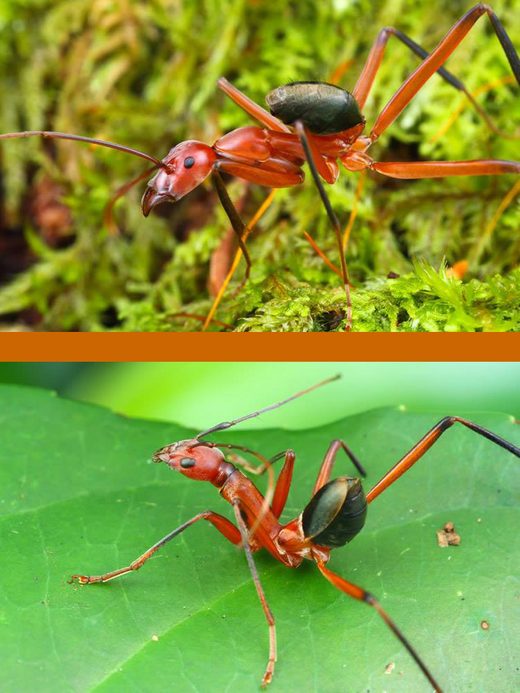 Ameisen sind beliebte Vorbilder, so wie diese Ameisenart im oberen Teil des Bildes.
