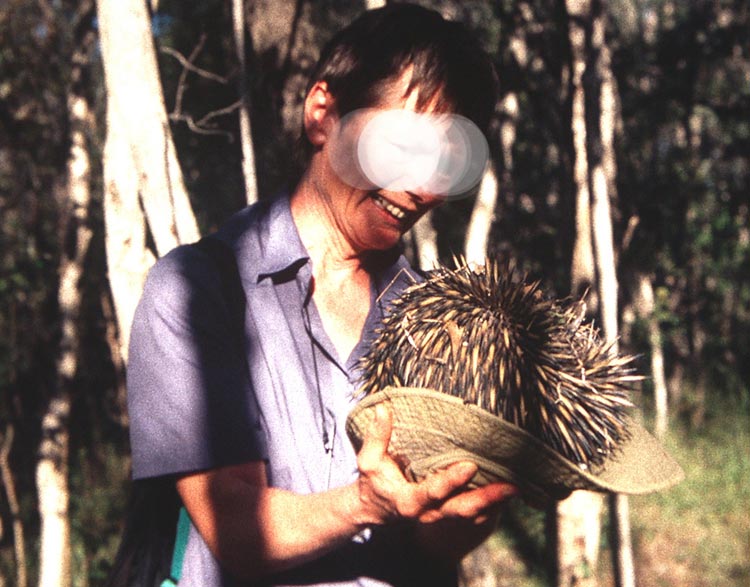 -Man beachte die Mischung aus konkurrierenden Gefühlen im Gesichtsausdruck der nicht ganz freiwilligen Ameisenigel-Halterin! :D