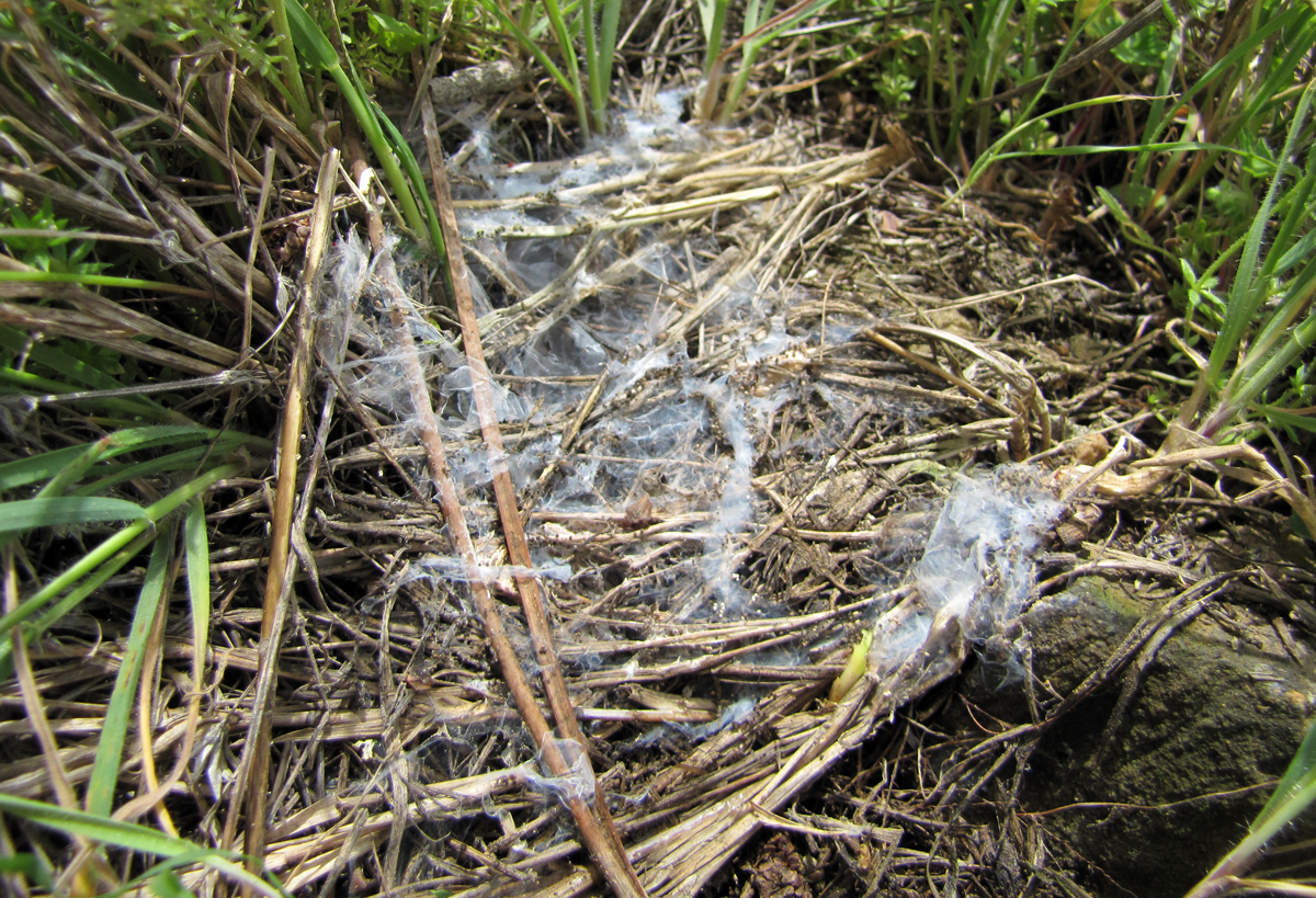 Keine weiteren Ideen? - Wir sind schon mal bei Insekten. Doch welche Insekten könnten unter Steinen solche Gewebe anfertigen?