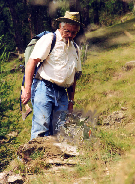 "Merkur" auf Exkursion in Südtirol.- Das Original (Foto: K. Stumm) habe ich nicht mehr gefunden. So muss dieses Bild herhalten, in dem ich mir eine "australische Wunderameise" in die Hand gezaubert habe. Aber sonst ist es original.
