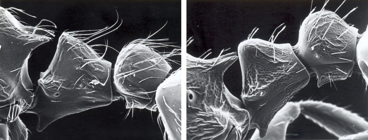 Stielchen der Gynen von L. pocahontas (links) und von der "Wirtsart"
